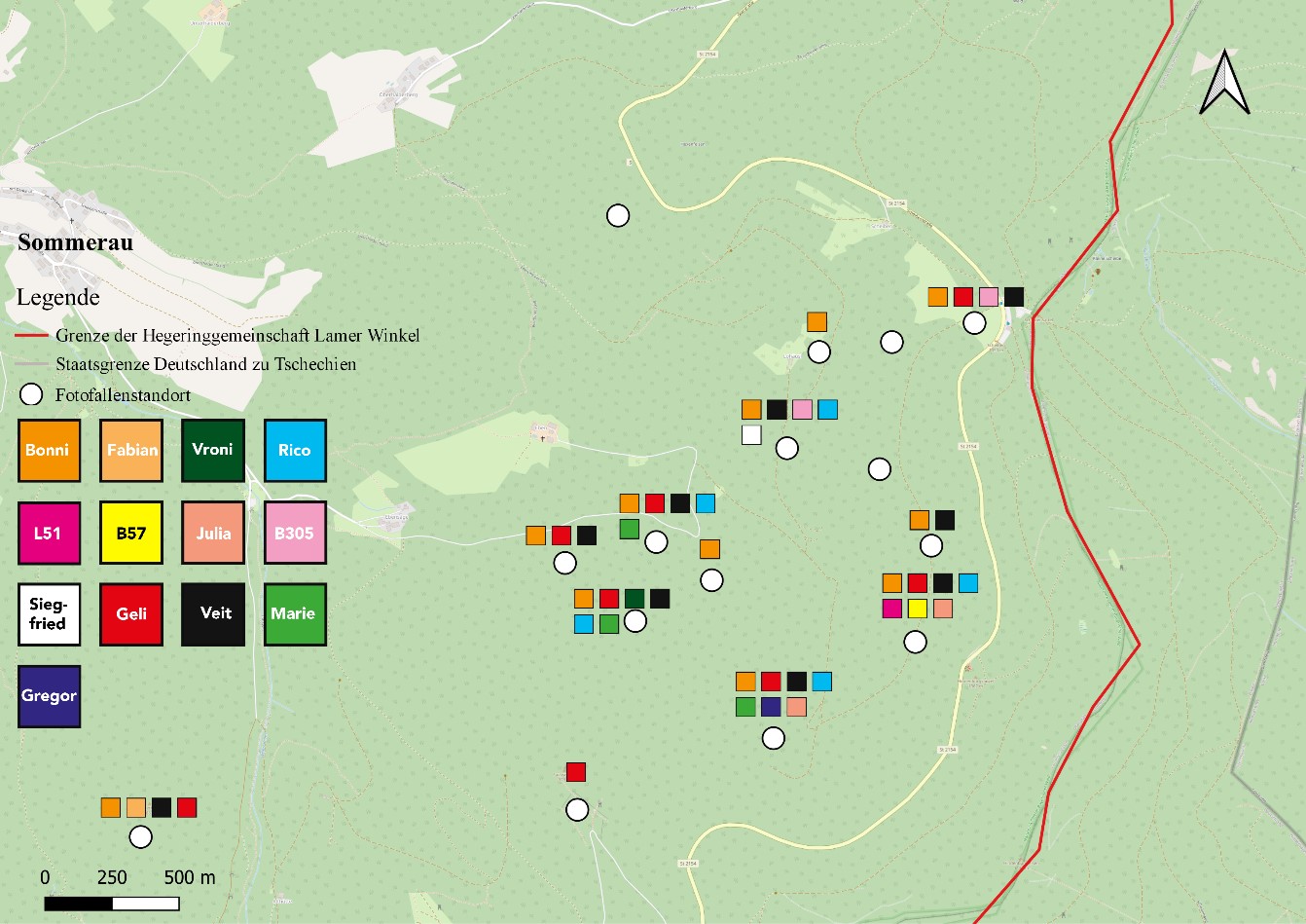 Die Luchse waren nach den Datenauswertungen im Lamer Winkel besonders in den Wintermonaten bis zum März signifikant häufiger auf den Kameras, während sie im April und Mai weniger Aktivität zeigten und damit eher selten auf Fotos abgebildet waren. Das Aktivitätsmaximum im Februar lässt sich leicht mit der Ranz erklären, aber auch das Abwandern der Jungtiere am Jahresende führt zu vermehrten Beobachtungen. Entgegen vieler insbesondere älterer Studien zur Biologie des Luchses, in denen nachgewiesen wurde, dass sich die Territorien unter gleichgeschlechtlichen Artgenossen strikt abgrenzen lassen und kaum Überlappungen vorkommen, konnten im Lamer Winkel im Jahresgang verschiedene Luchsindividuen gleichen Geschlechts in überlappenden Revieren bestätigt werden. Klassischerweise wird beschrieben, dass die Reviere der Kuder größer sind als die der Kätzinnen und somit umschließt das Revier eines männlichen Luchses die Streifgebiete mehrerer Weibchen. Dieses in den Lehrbüchern als streng konservativ beschriebene Territorialverhalten der Luchse entspricht vermutlich nach wie vor in Gebieten mit eher niedriger Luchsdichte der Realität. Bei Populationen, die sich im Aufbau befinden oder dort, wo die Beutetiere – allen voran das Rehwild – grundsätzlich selten sind, wie z.B. in nördlichen Teilen Skandinaviens bleibt die strenge Territorialität innerhalb der Geschlechter sicher aus überlebensstrategischen Gesichtspunkten aufrecht erhalten.