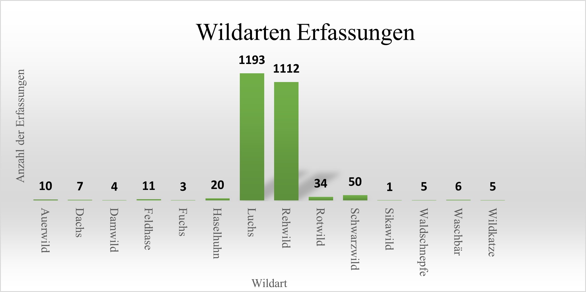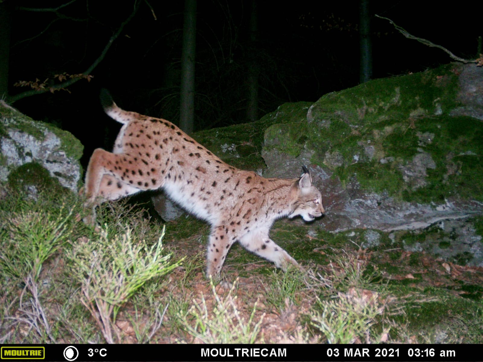 Insgesamt wurden im Monitoringzeitraum 2.461 aufgenommene Ereignisse erfasst und ausgewertet. Erfasst wurden dabei 17 verschiedene Wildarten. 1.193 Aufnahmen zeigten den Luchs, 1.112 mal war Rehwild zu sehen. Aber auch Rotwild, Wildkatzen, Haselhuhn und Auerwild lösten das Blitzlicht der Kameras aus.