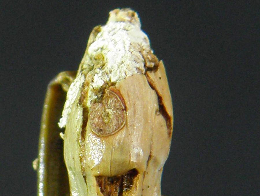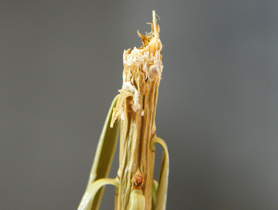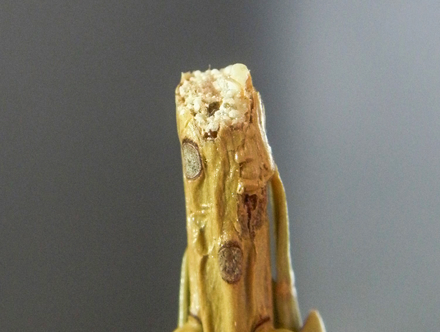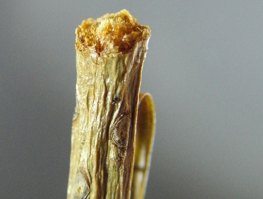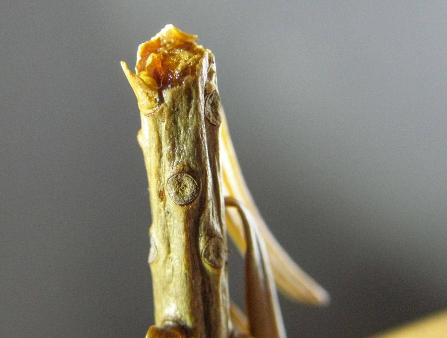 Das Bild zeigt einen von Sauen verbissenen Terminaltrieb. Bild: Dieter Immekus